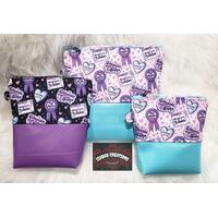 Coffin shaped sunglasses case. Can hold large style sunglasses. Cotton exterior. Soft non abrasive interior. Carries glasses securely. Great to protect your glasses when thrown in a bag or purse. Approximate dimensions 8" x 5".